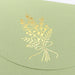 La mimosa, que tiene el lenguaje floral de "corazón que abraza", se expresa mediante estampado en pan de oro.