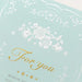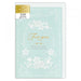 Una elegante tarjeta multiusos con flores suaves y brillantes de color menta.