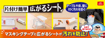 "Folha fácil de limpar e espalhar" é uma folha dedicada à prevenção de manchas que combina fita adesiva e uma folha de cura dobrada.